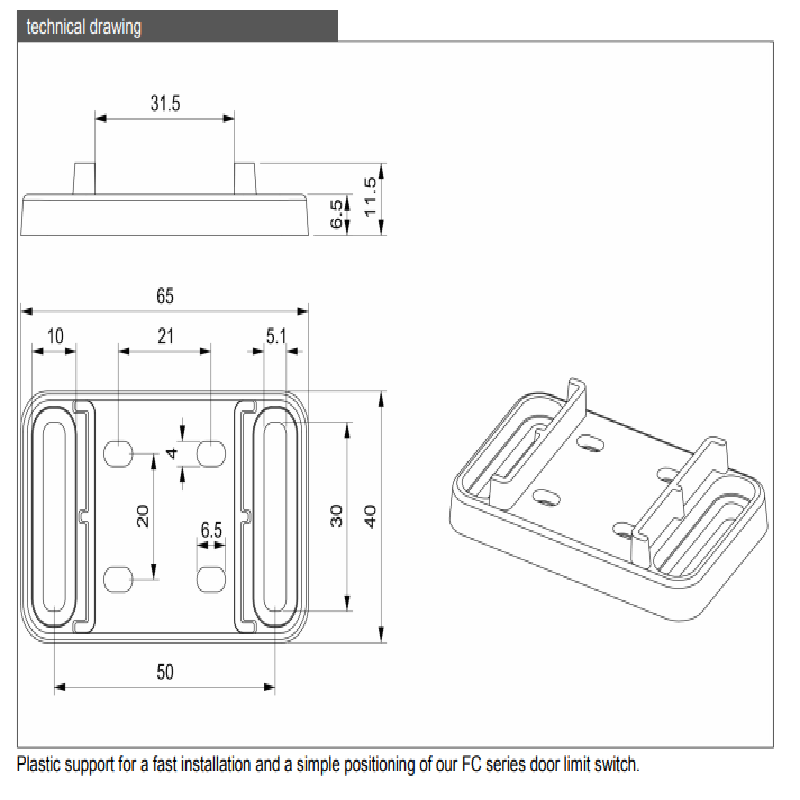 Plastic support for a fast installation and positioning of the door limit switches